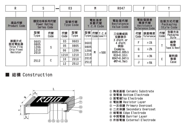 3、旺詮厚膜排列晶片電阻阻值代碼識別。