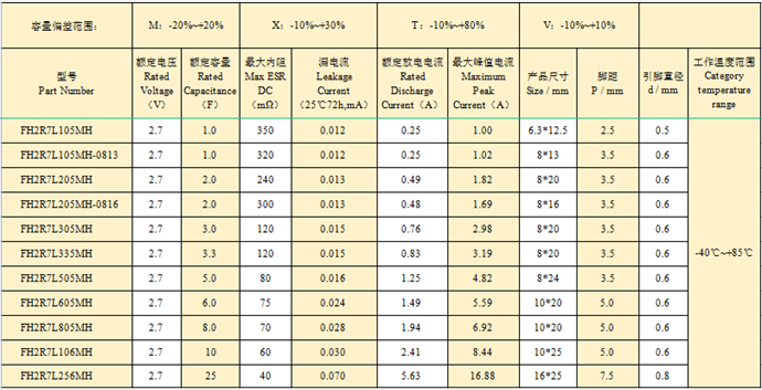 產品報價:風華超級電容低內阻FH2R7L106M