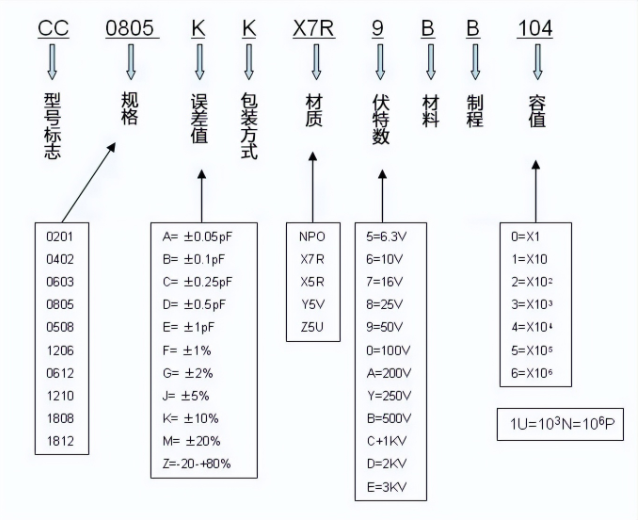 誤差:電容的容量值可能存在一定的誤差,如K表示±10%的誤差。