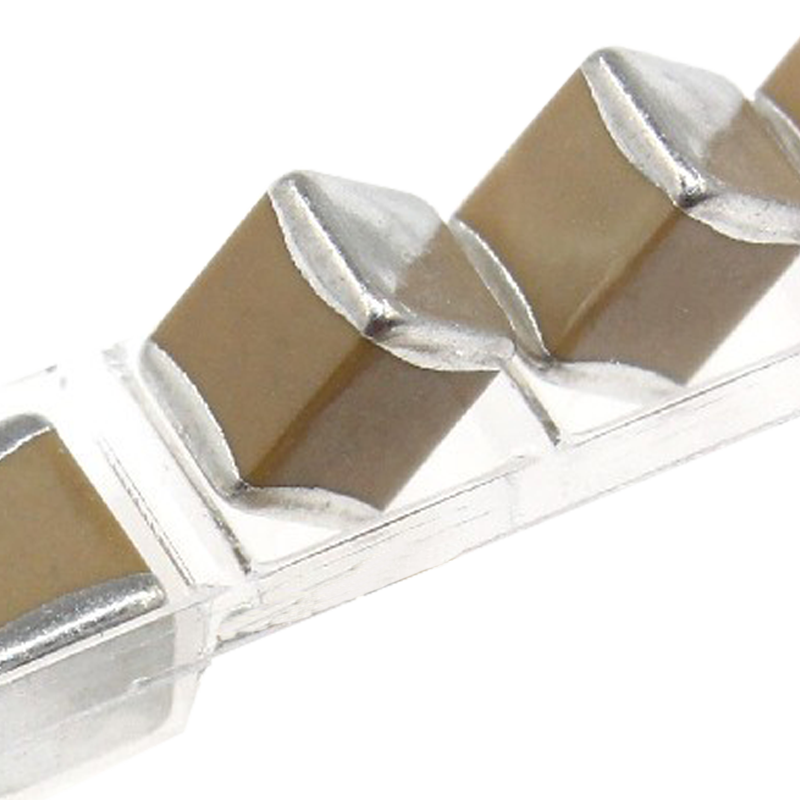 編帶粘膠顏色:國巨貼片電容的編帶粘膠通常為黃色,這是一個(gè)明顯的識別特征。如果編帶粘膠顏色不符,很可能是仿制品。