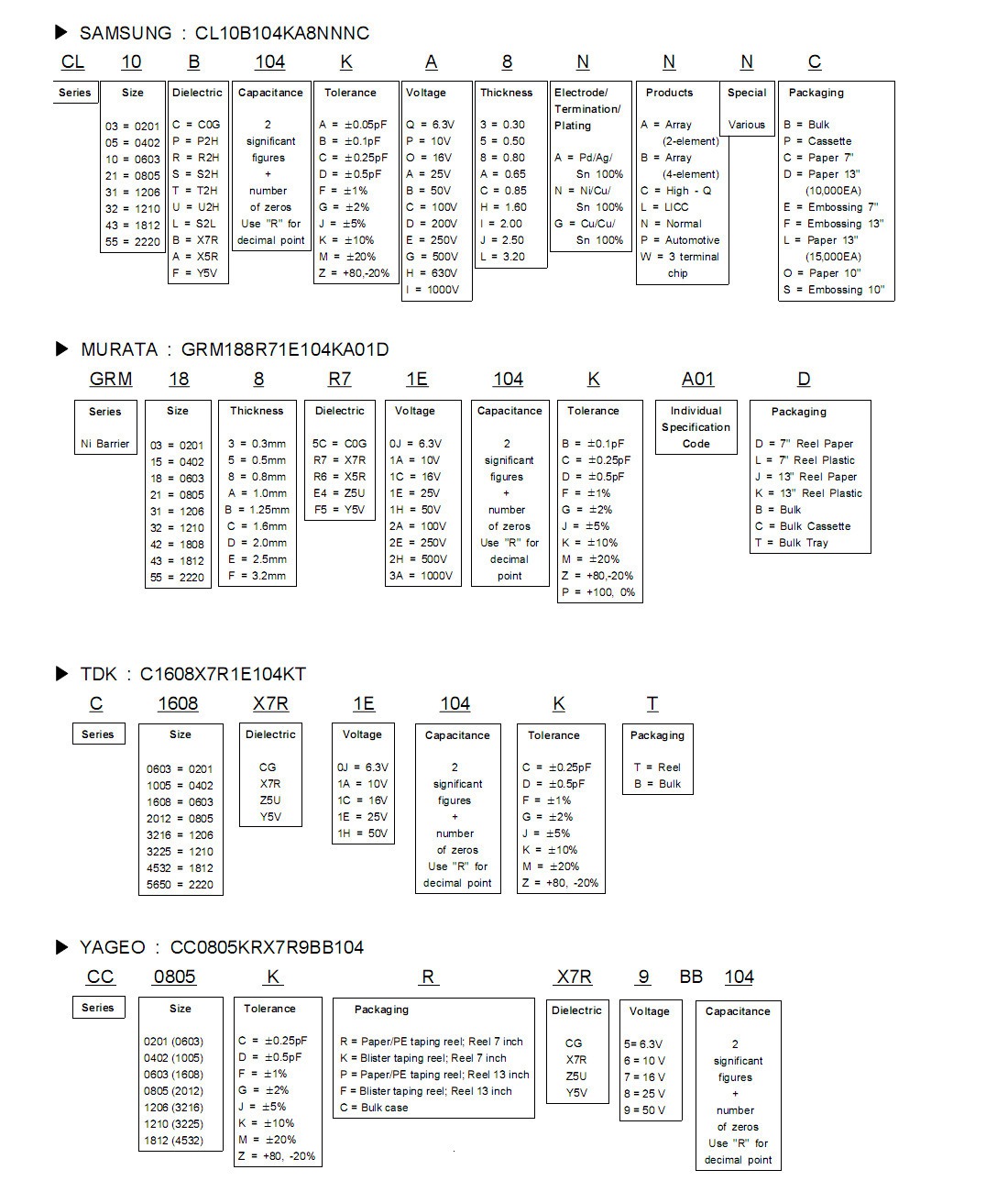 偏差:B=±0.1pF、C=±0.25pF、D=±0.5pF、F=±1%、G=±2%、J=±5%、K=±10%、M=±20%、Z=-20%+80%