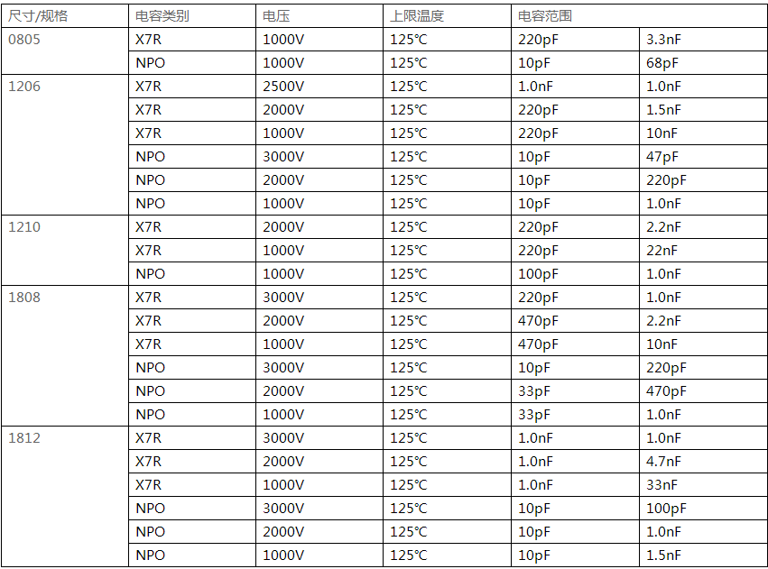 標簽:國巨瓷片貼片高壓電容常用參數