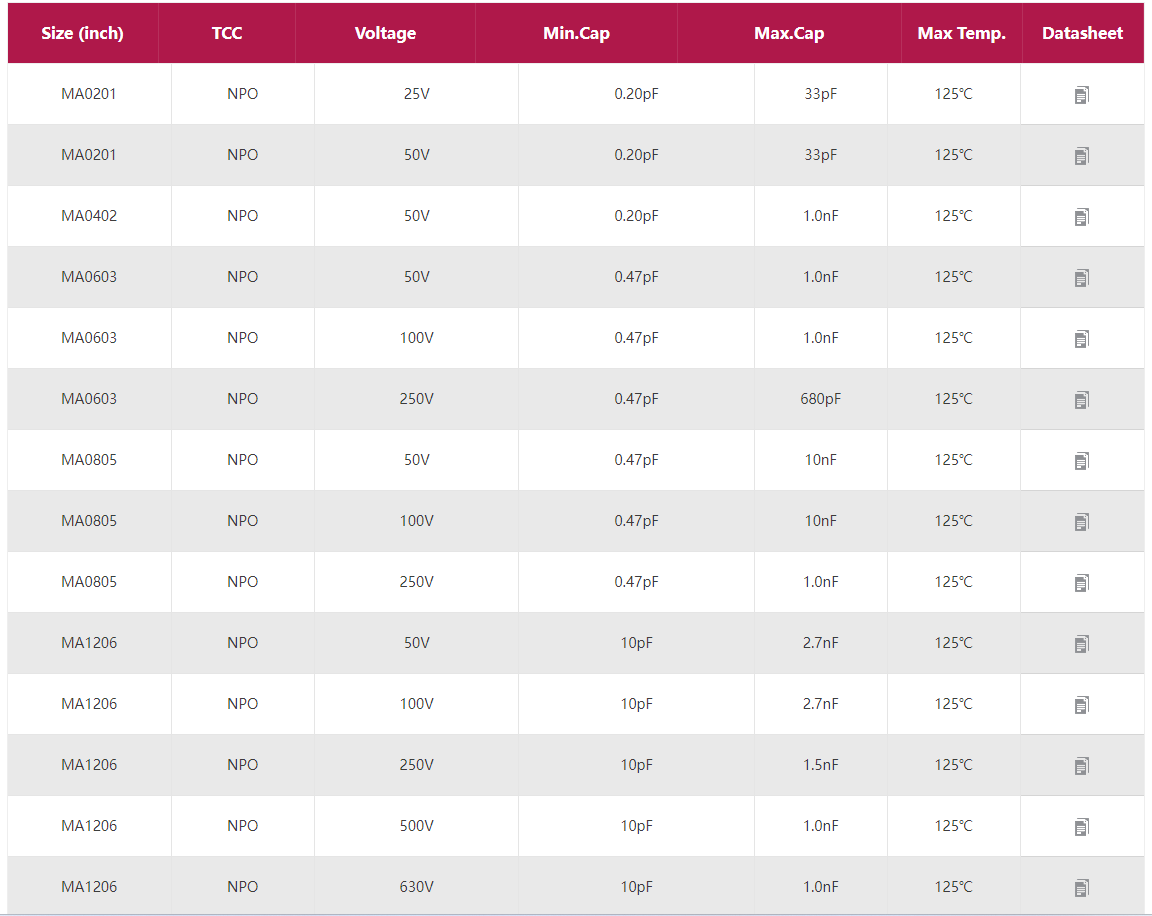信維車用電容 產品型號:0201 0402 0603 0805 1206 1210